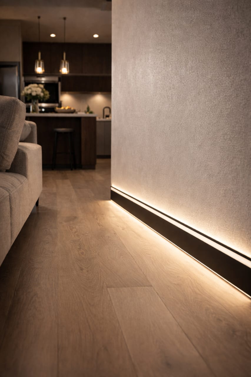 #RodapieIluminado #DecoraciónModerna #HogarConEstilo #IluminaciónInterior #Carpihogar